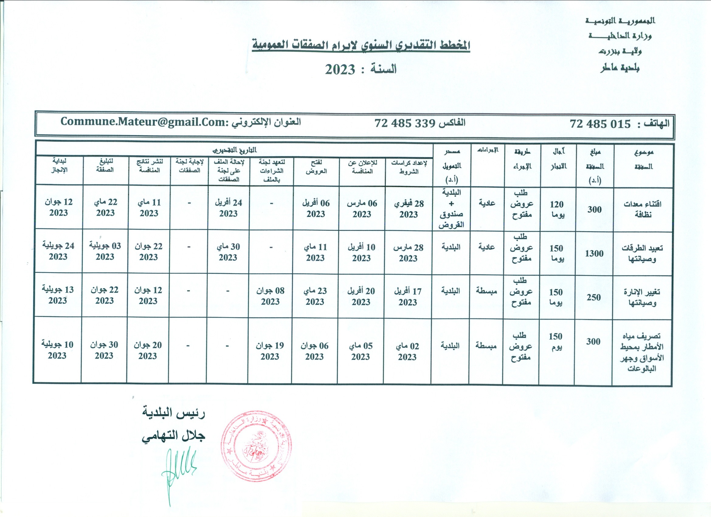 المخطط التقديري السنوي لابرام الصفقات العمومية لسنة 2023