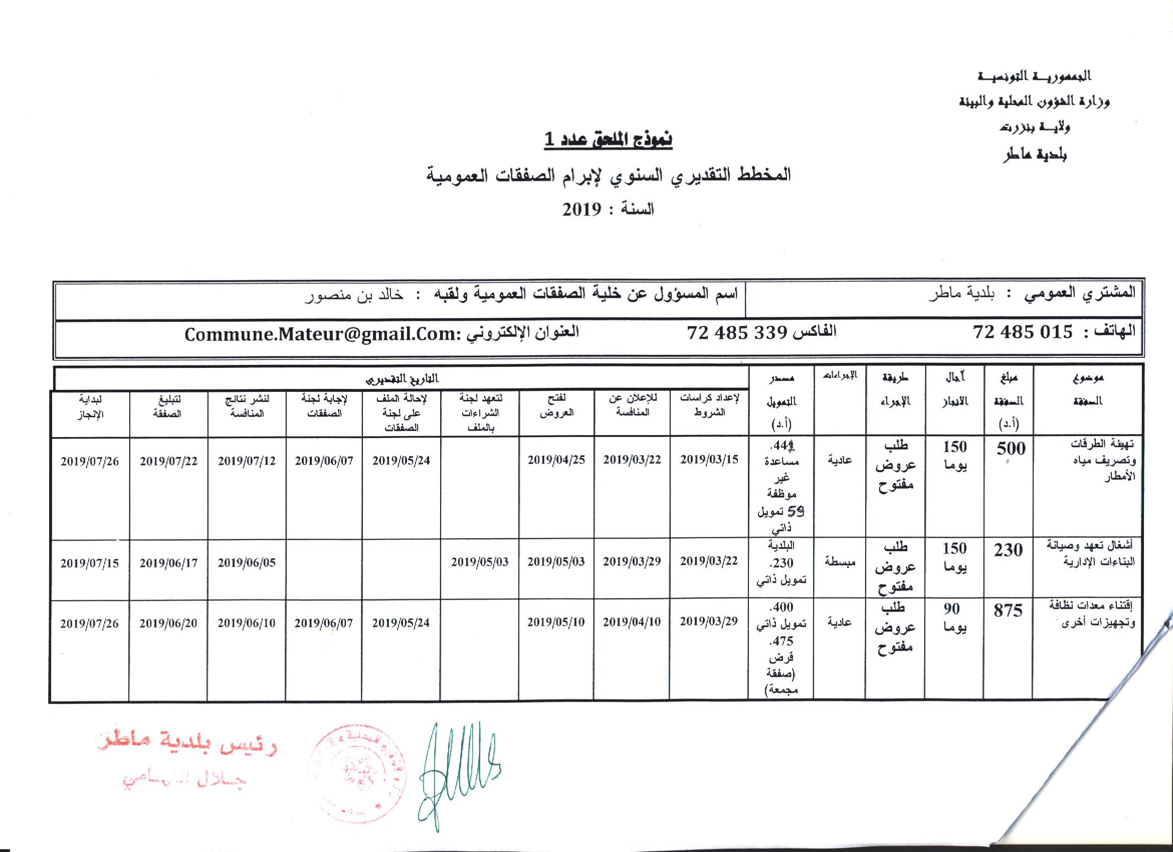 المخطط التقديري السنوي لابرام الصفقات العمومية لسنة 2019