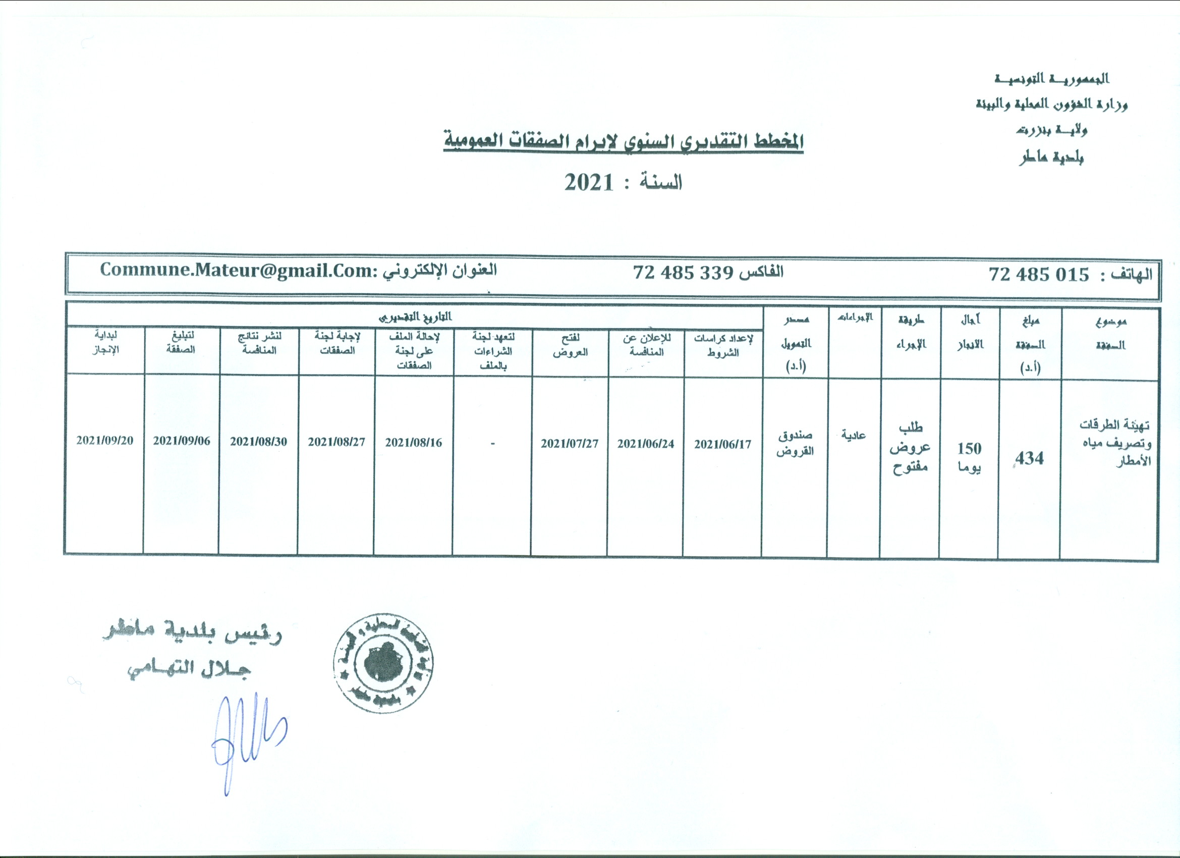 المخطط التقديري السنوي لابرام الصفقات العمومية لسنة 2021